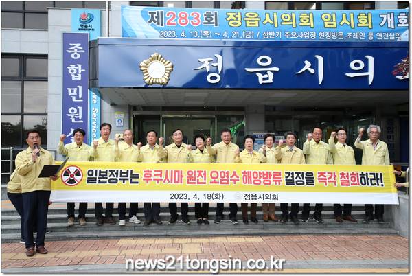 정읍시의회(의장 고경윤)는 18일 일본 후쿠시마 원전 오염수 방류 규탄대회 를 개최했다.