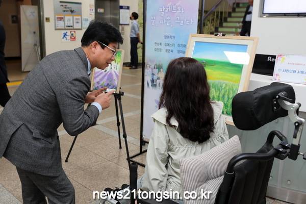 광주나눔장애인자립생활지원센터 미술자조모임 ‘팔레트’ 소속 작가들의 작품 전시도 눈길을 끌었다.