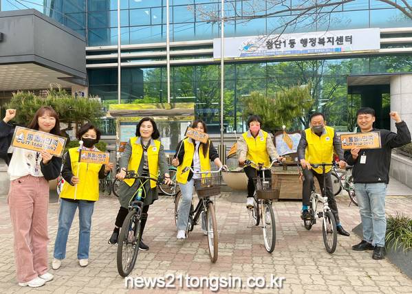 첨단1동은 ‘통돌의민족’ 자전거 홍보단이 등장했다. 온라인 배달앱 명칭을 본 따 많은 시민에게 통합돌봄 서비스를 알리는 역할을 하겠다는 의미다.