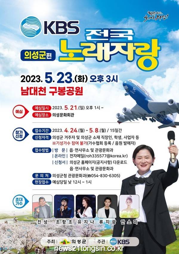 KBS 대표 간판 프로그램인 전국노래자랑이 의성군을 다시 찾은 것은 2018년 이후 5년만으로 MC 김신영과 초대가수 진성, 조항조, 유지나, 류지광, 안소미가 출연해 군민에게 즐거움을 선사할 예정이다.