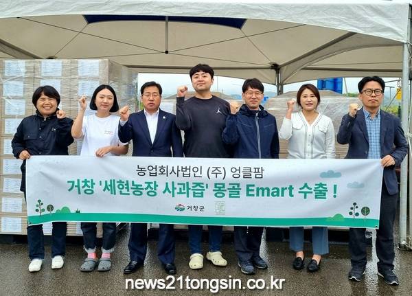 군은 지난해 몽골 시장 개척을 위해 5월 현지 시장조사를 통해 몽골 이마트와 거창 사과즙 수출을 협의했다. 그 결과 지난 12월 몽골 이마트에서 진행한 농특산식품 홍보 판촉행사에서 ㈜엉클팜 사과즙 판매 계약을 체결하는 성과를 이뤄냈다.