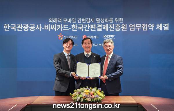 한국간편결제진흥원(이사장 최통주, 이하 한결원)은 25일 한국관광공사 서울센터에서 한국관광공사(사장 김장실, 이하 공사), BC카드(사장 최원석, 이하 BC)와 방한 외국인의 모바일 간편결제 활성화를 위한 업무협약을 체결했다고 26일 밝혔다.