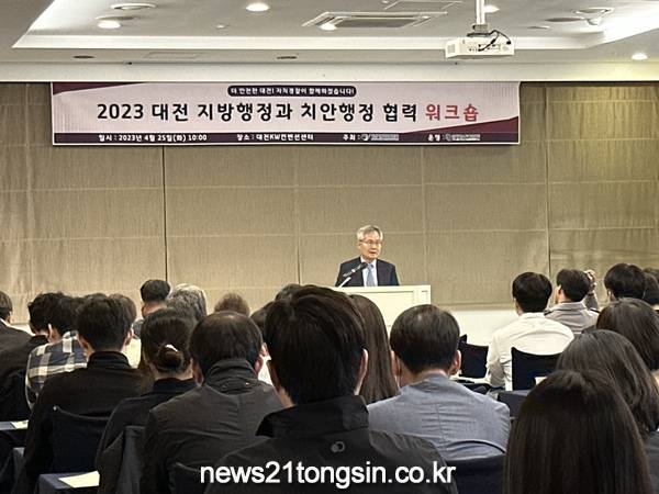대전자치경찰위원회(위원장 강영욱)는 4. 25.(화) 10:00 대전 서구 KW컨벤션에서 자치단체 및 경찰청 등 유관기관과의 유기적 연계·협력 강화를 통한 공동치안 네트워크를 형성하기 위하여 합동 워크숍을 개최했다.