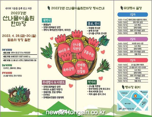 산나물 반값 경매, 바비큐 요리시연ㆍ시식, 산나물 이름 맞추기, 경품추첨 등 다양한 이벤트를 통해 행사장을 찾는 관람객들에게 즐거움을 선사할 계획이다.