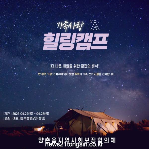 김포시 양촌읍 지역사회보장협의체(공동위원장 이기일, 김동준)는 지난 27일과 28일 이틀간 ‘여울지 숲속 캠프장’에서 취약계층 10가구 30명을 대상으로 ‘가족사랑 힐링캠프’를 개최했다.