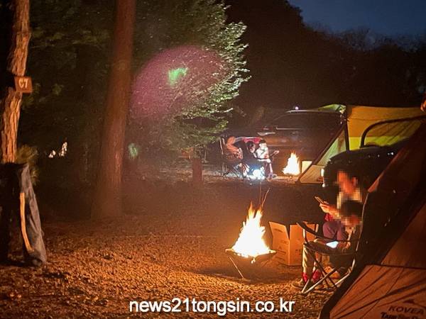 <</span>사진설명2_캠프에 참여한 한 가족이 작은 모닥불 앞에서 시간을 보내고 있다.>