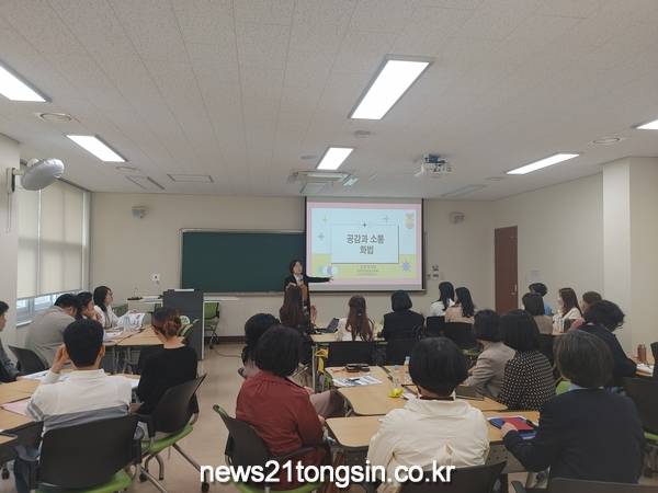 1일 시교육청에 따르면 이번 연수는 ‘공감과 지혜로운 소통의 화법’이란 주제로 펼쳐졌다. 강은미 강사가 공감‧소통 기반의 컨설턴트 역할 등을 다뤘다. 이어 수요자‧현장 중심 2023학년도 유치원 컨설팅의 기본방향에 뜻을 모으며 주요사항을 협의하는 시간을 보냈다.
