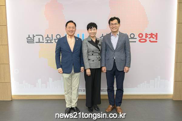 (▲사진=지난 27일 구청 회의실에서 기념촬영 중인 이기재 양천구청장(오른쪽)