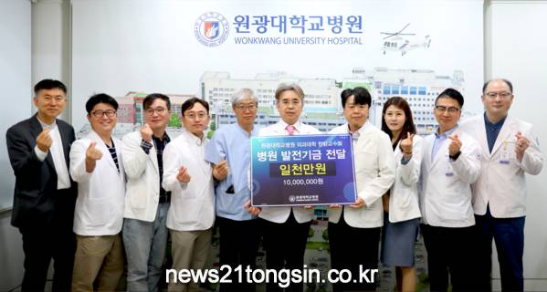 원광대학교 의과대학 한밝교수회(회장 이명수)가 지난 26일 원광문화센터 5층 회의실에서 원광대학교병원(병원장 서일영)에 발전기금 일천만원을 기부했다.