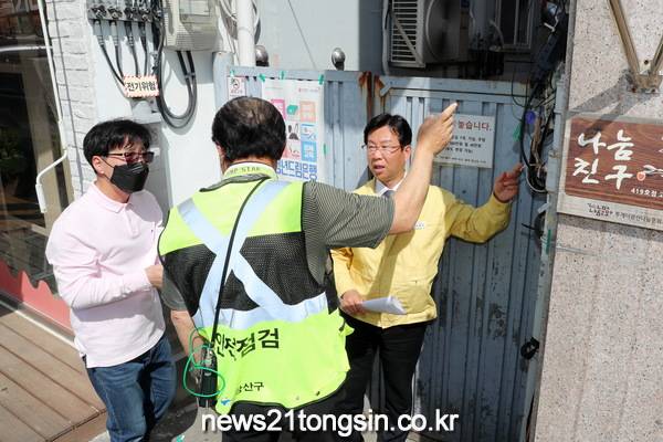 박병규 청장은 이날 광산구 안전관리자문단, 1913송정역시장 상인회 등과 함께 시장을 돌며 건축, 전기, 가스 등 시설관리 상태를 확인했다. 열화상카메라를 활용해 육안으로 관찰하기 어려운 곳도 꼼꼼하게 점검했다.