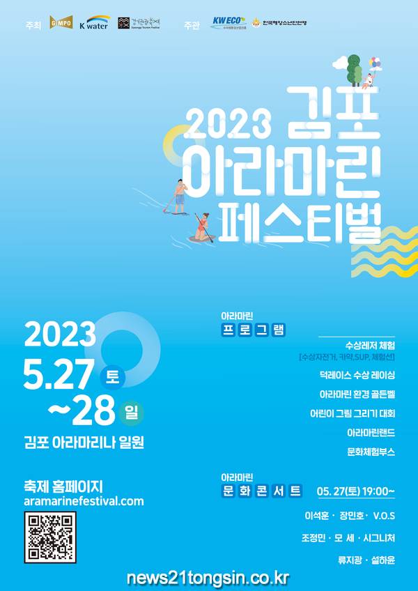 다가오는 5월 27일부터 28일까지 이틀간 고촌읍 아라마리나 일원에서 펼쳐지는 ‘2023 김포 아라마린페스티벌’은 수상·수변 인프라를 활용한 체험과 다채로운 공연으로 시민들에게 색다른 즐거움을 선사할 예정이다.