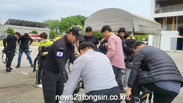 광주시교육청이 3일 광주소방학교에서 제1기 학교안전담당자 체험 연수를 실시했다. 3일 시교육청에 따르면 이번 연수는 관내 학교 안전담당자들의 안전 문제에 대한 현장 위기 대응 능력을 함양하고자 광주소방학교와 협업으로 진행했다.