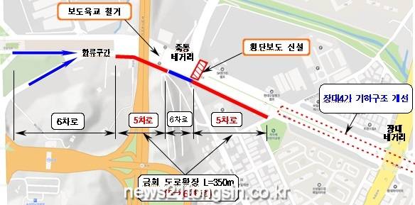 특히 일부 구간이 6차로에서 5차로로 줄어들면서 상시 교통정체가 발생하고 있으며, 출퇴근 시간대에는 도로 병목현상으로 차량 혼잡이 매우 심각한 상황이다.