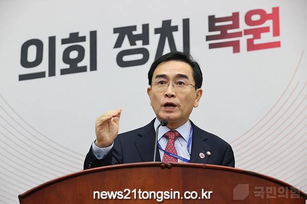 국민의힘 황정근 윤리위원장은 오늘 여의도 당사에서 40여 분간 긴급회의를 마친 뒤 기자들과 만나 "태영호 최고의원의 녹취록 관련 안건 징계 개시를 결정했고, 다음 주 회의에서 기존 징계 안건과 병합해 심리하기로 했다"고 밝혔다.