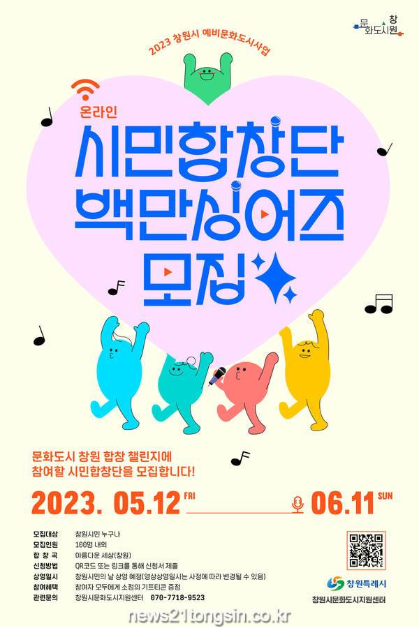 창원특례시(시장 홍남표)는 창원시문화도시지원센터(대표 황무현)가 창원예비문화도시사업의 일환으로 ‘온라인 시민합창단 100만싱어즈’ 참여자를 6월 11일(일)까지 모집한다고 16일 밝혔다.