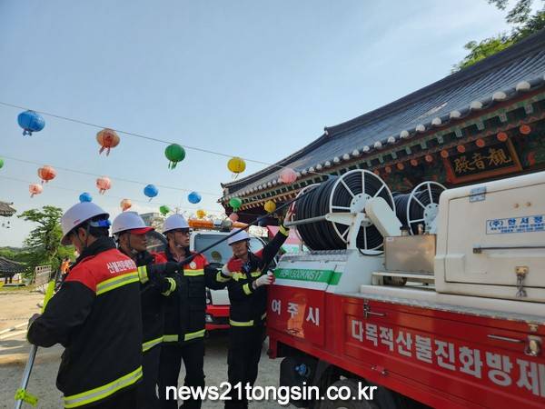 여주시(시장 이충우)가 올해 3월 29일 취약계층 시설인 강천면 라파엘의 집을 대상으로 한 산불 및 화재 대비 합동훈련에 이어 5월 17일(수) 경기도소방재난본부, 여주소방서, 의용소방대 등 유관기관과 합동으로 중요 목조 문화재(신륵사) 보호를 위한 합동진화 훈련을 실시하였다.