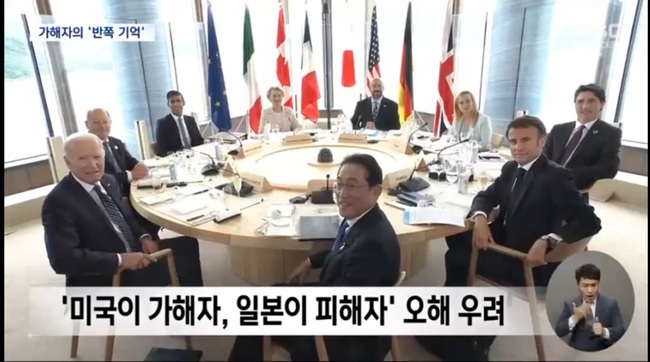 이번 G7 정상회담 첫날 행사에 전 세계의 이목이 히로시마에 집중된 상황에서 일본은 원폭의 피해자였다는 점을 부각시켰다.