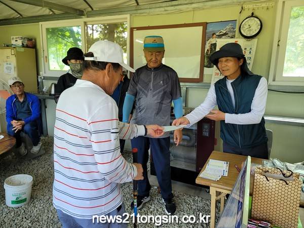 군위 동그라미파크골프클럽(회장 홍재식)은 20일 군위읍 파크골프장에서 30여명의 회원들과 월례회 겸 친선경기를 했다.