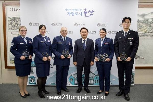 군산시는 22일 주한미군 제8의무전대 코로나19 대응 유공자 표창 수여식을 개최했다. 이번 표창은 주한미군들과 공무원들이 지역사회의 코로나19 대응과 확산 방지를 위해 힘써온 공로를 인정하고 감사의 뜻을 전하기 위해 열렸다.
