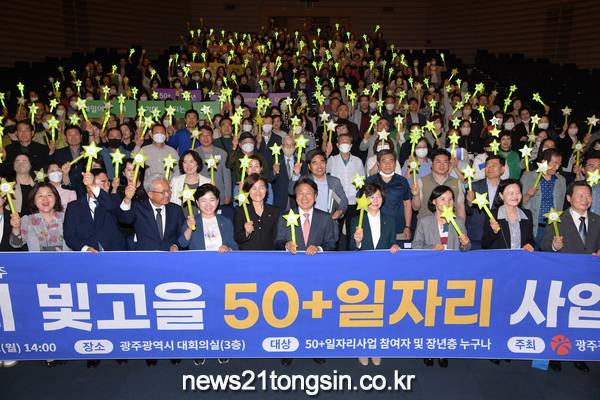 광주광역시는 22일 시청 대회의실에서 장년층이 가진 경험과 전문성, 열정 등을 활용한 사회공헌형 일자리인 ‘빛고을50+일자리’ 참여자 발대식을 개최했다.