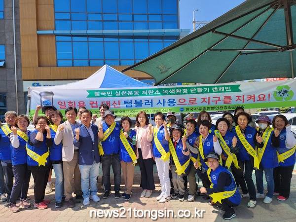 직접 제작한 텀블러와 장바구니를 나눠주며 군민들에 참여를 유도했다.