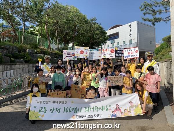 강화군자원봉사센터는 23일 합일초등학교 일원에서 교통안전 캠페인 활동을 펼쳤다.