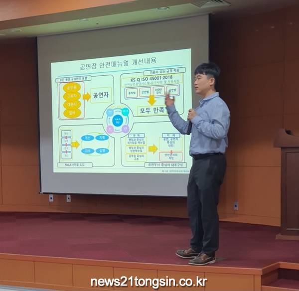 이번 교육은 공연예술 분야의 안전 문화와 안전 의식을 향상시키기 위해 마련됐으며, 공연안전 개요, 공연 안전관리 어려움, 공연 안전관리의 개선방향 등에 대한 교육으로 진행됐다.