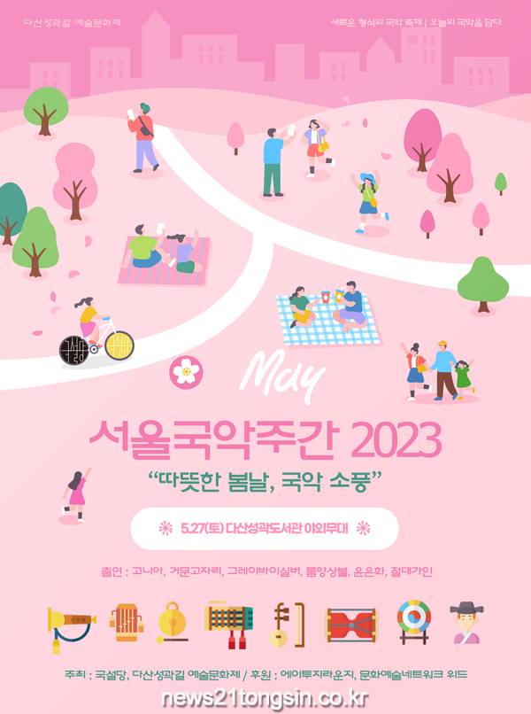 ▲ 사진=서울국악주간2023 포스터5월 22일(월)부터 27일(토)까지 ‘서울국악주간2023 : 따뜻한 봄날, 국악 소풍 - 오늘의 국악을 담다’가 다산성곽길 예술문화제와 공동 개최된다.