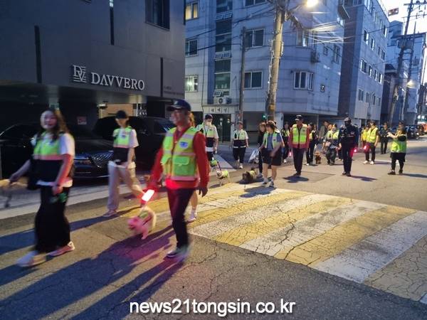 최근 주목받고 있는 이 방법은 바로 반려견이 주민들을 위해 지역 자율방범대와 함께 야간 합동순찰을 하는 것이다.