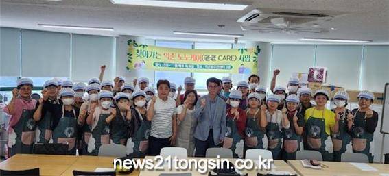 노노케어(老老 CARE)는 독거어르신들의 정서적 소외감을 해소시키고 선순환 돌봄문화를 조성하는 사업이다. 건강한 어르신이 스스로 돌봄이 어려운 독거어르신에게 직접 밑반찬을 만들어 배달하며 말벗 제공과 안부 확인을 한다.