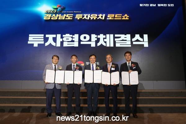 창원특례시(시장 홍남표)는 30일 오후 2시 부산광역시 남구 그랜드 모먼트 유스호스텔에서 열린 ‘2023 경상남도 투자유치 로드쇼’에서 로만시스㈜, 디아이시스템㈜, 나이가이부산물류센터㈜ 등 3개사와 투자금액 총 1406억 원, 신규고용 180명 규모의 투자협약을 체결했다고 밝혔다.