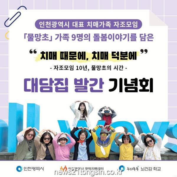 인천시와 광역치매센터는 초로기 치매 환자의 보호자이자 작가인 조기현 작가, 치매 가족 자조모임인 ‘물망초’ 회원 9명과 치매 환자 가족들의 10년간의 돌봄 과정을 담은 대담집을 발간했다.