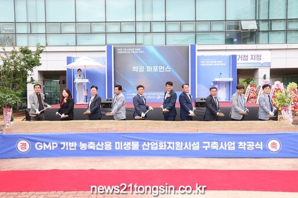 뉴스21통신전북/김문기기자=정읍시 (재)농축산용미생물산업육성지원센터가 1일 GMP(우수 제품 제조 및 품질관리 기준)기반 농축산용 미생물산업화 지원시설’착공식을 갖고 본격적인 행보에 나섰다.