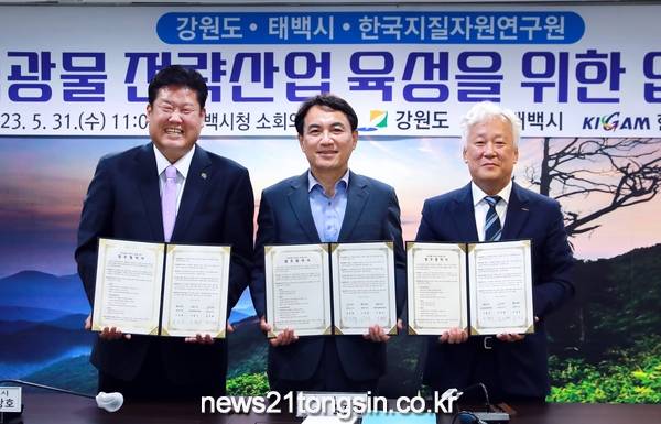 이어 태백시청을 방문한 김진태 강원도지사는 태백시, 강원도, 한국지질자원연구원과의 업무협약식에 참석하여 태백시에서 역점으로 추진하는 핵심광물 관련 산업이 조기에 정착될 수 있도록 전폭적인 지원을 약속했다. 이상호 태백시장은 김진태 강원도지사의 전폭적인 지원 약속에 감사 인사를 전하며, 지역 발전을 위해 추진중인 핵심광물 산학연 혁신 기술단지 조성에 도비 146억 원을 적극 지원해 사업 추진에 힘을 실어 줄 것을 요청했다.