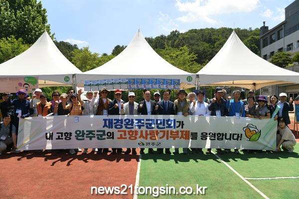 [전북=뉴스21] 오충일 기자= 재경완주군민회(회장 김경회)가 완주 대둔산축제를 찾아 완주 고향사랑기부제의 성공적인 정착과 제도 활성화를 응원했다.