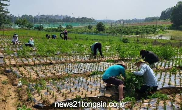 이날 무더운 날씨 속에서 행정지원과 직원 20명은 농가주와 함께 풀매기 작업에 힘을 보태며 구슬땀을 흘렸다.