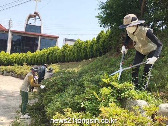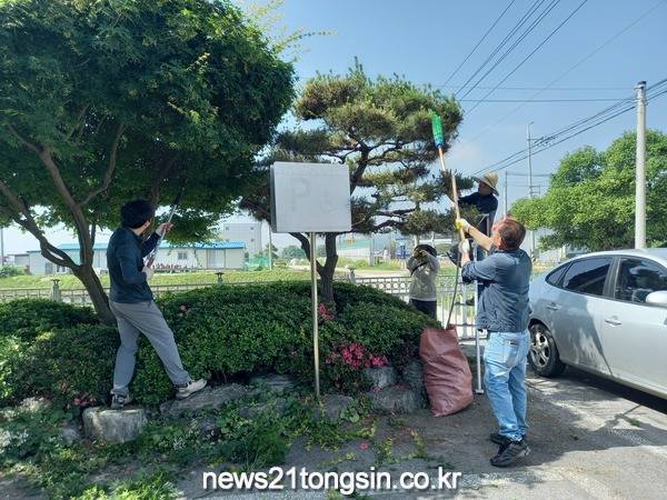 뉴스21통신전북/김문기기자=정읍시 시민정원사는 지난 3일 공공기관 화단 내 조경수 전지작업 봉사활동을 실시했다.