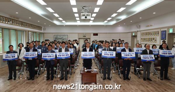 전 직원 청렴 실천 결의문을 낭독하며 청렴 실천에 대한 결연한 의지를 표명했다. 결의문에는 공무원 행동강령 준수, 금품‧향응 수수 금지, 부당한 지시 및 청탁 금지, 신뢰받는 공직사회 만들기 등에 대한 내용이 담겼다.