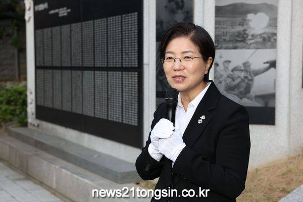 김미경 구청장은 “이 땅에 다시는 6·25 전쟁과 같은 비극은 되풀이 되지 말아야 하며, 오늘 추념행사는 아픔의 역사가 반복되지 않기를 희망하는 우리의 다짐이기도 하다”며 “선열들 한분 한분의 고귀한 희생을 기리고 그 분들의 헌신을 기억하고 추모하며 대한민국의 밝은 미래를 위해 한걸음 한걸음 전진하는 것이 나라를 위해 목숨을 바치신 영웅들을 위한 이 시대를 살아가는 우리의 마땅한 책무”라고 말했다.