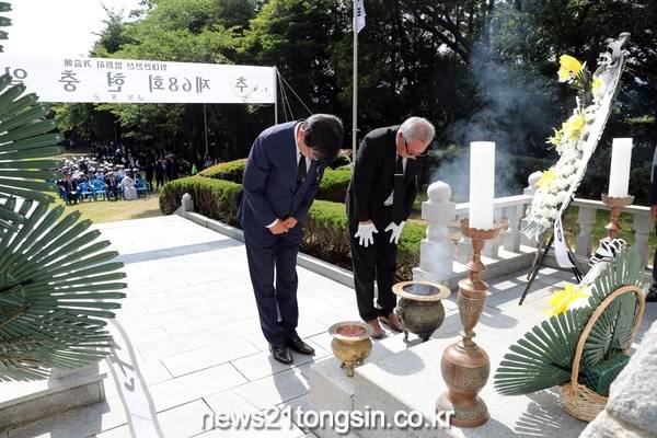 이어 헌화와 분향, 유공자 표창, 추념사 낭독 순으로 진행되었다.