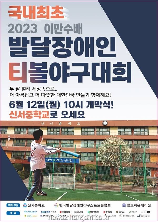 신서중학교(교장 손기서)는 한국발달장애인 야구소프트볼협회(회장 이갑용) 및 헐크 파운데이션(명예회장 이만수)과의 공동주관으로, 「2023 이만수 배 발달장애인 티볼야구대회」를, 6월 12일(월) 신서중학교에서 국내 최초로 개최한다.