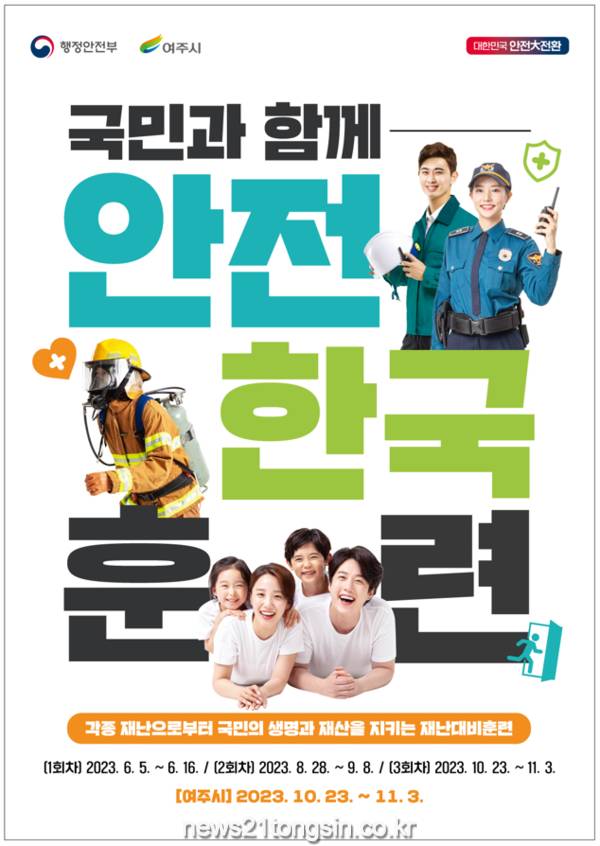 여주시는 2023년도 안전한국훈련을 3차 훈련기간에 실시하며, 관내 공공기관과 산하기관, 안전협력단체, 종교시설, 복지시설 등 23개 기관‧시설이 참여한다. 훈련기간에는 주요 시설에 대한 안전점검과 화재대피훈련, 심폐소생술 교육 등 안전체험교육도 이루어진다.