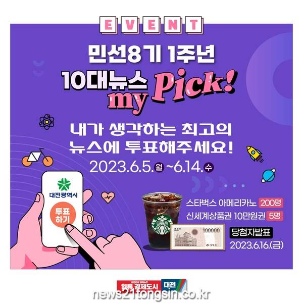 일류경제도시 도약을 위해 달려온 대전시가 민선 8기 1년을 맞아 온라인 시민투표를 통해‘10대 뉴스'를 선정한다.
