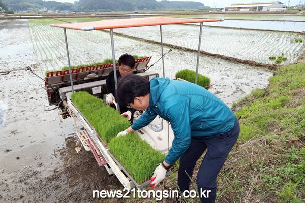 이날 김 군수는 모내기가 한창인 용산면 모산리를 시작으로 관산읍 영농현장을 차례로 방문했다.