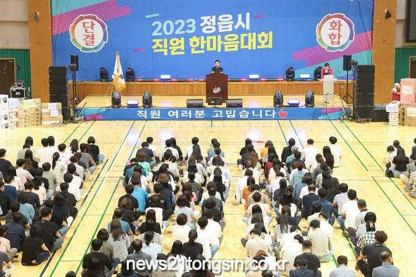 정읍시는 정읍시 공직자들의 사기 진작과 활기찬 직장 분위기 조성을 위해 9일 정읍국민체육센터에서 '2023년 정읍시청 직원 한마음대회'를 가졌다.