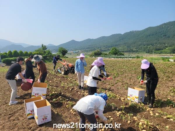 일손부족으로 어려움을 겪고 있는 지역민들을 돕기 위해 송전마을을 찾아 감자 수확 및 선별, 포장작업을 실시했다.