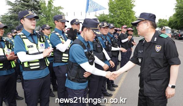최주원 청장은, 집회관리 등 각종 임무 수행에 노고가 많은 경찰 기동대원을 격려하면서, “경찰은 국민의 자유를 침해하는 불법에 당당하게 대응해야 한다”라며, “현장 법 집행에서 사명감과 자부심을 가지고 국민의 안전과 인권에 유념하면서 경찰의 기본 역할에 충실해 달라”고 당부했다.