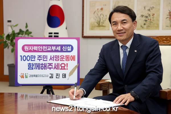 강원특별자치도는, 김진태 지사가 6월 12일‘원자력 안전교부세 신설, 100만 주민 서명 운동’ 챌린지에 참여해 지방교부세법의 신속한 개정을 촉구했다고 밝혔다.