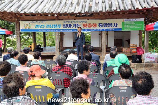 장흥군과 전남블루 재능 봉사단은 13일 장흥군 부산면 춘정마을에서 통합봉사활동을 펼쳤다고 전했다.