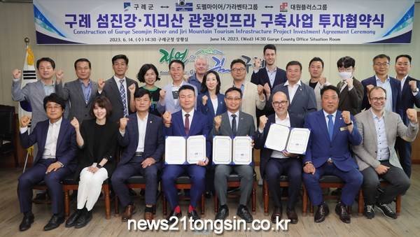 전남 구례군은 지난 6월 14일 도펠마이어/가라벤타그룹, 대원플러스그룹과 “구례 섬진강·지리산 관광인프라 구축사업 투자협약”을 체결했다고 밝혔다.